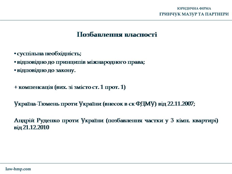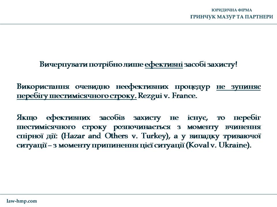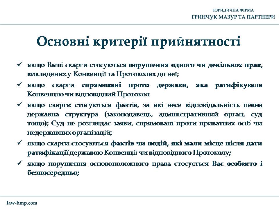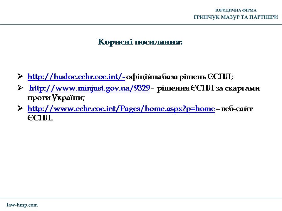 Презентация с выступления на конференции во Львове управляющего партнера ЮФ «Гринчук Мазур и партнеры» Андрея Гринчука на тему «Что нужно знать для защиты своих прав в Европейском суде по правам человека».