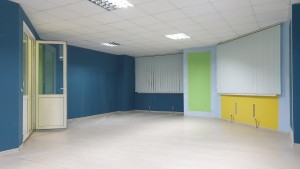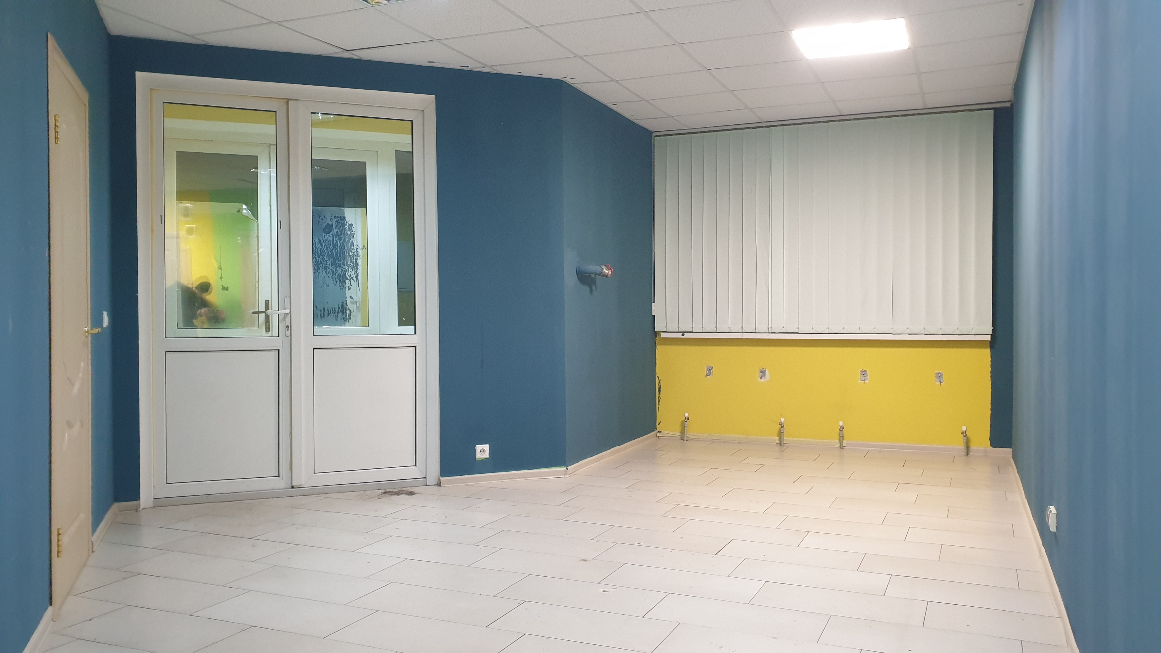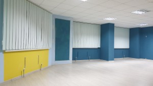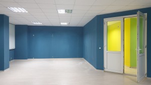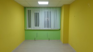 Зроблений офісний косметичний ремонт. Підлога- плитка та ламінат, стіни пофарбовані, стеля підвісна (Амстронг).