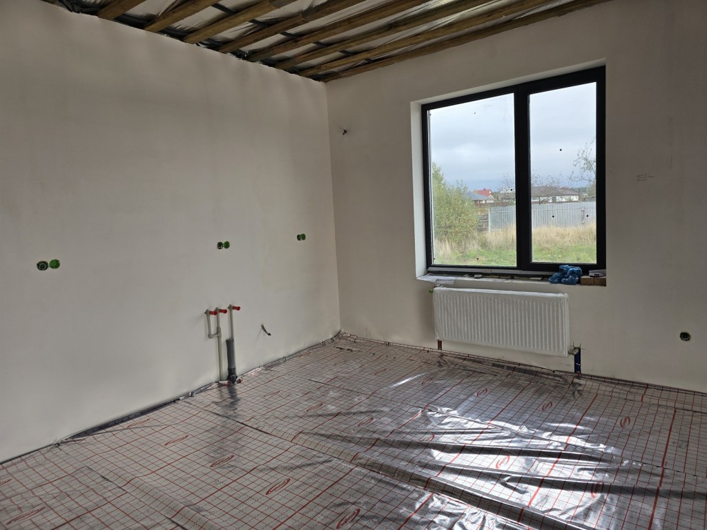 Продаж одноповерхового будинку незавершенного будівництва в с.Тетерівка. Ділянка 10 соток приватизованої землі. Загальна площа 120м.кв., 3 окремих кімнати,2 санвузла, кухня-вітальня 45м.кв., тераса, тепла підлога, світло 15кВт.,криниця, септик.