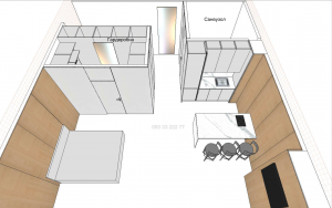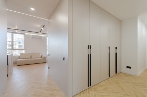 Ергономічна квартира-студія з функціональним плануванням: простора кухня-вітальня, вмістка гардеробна та санвузол.