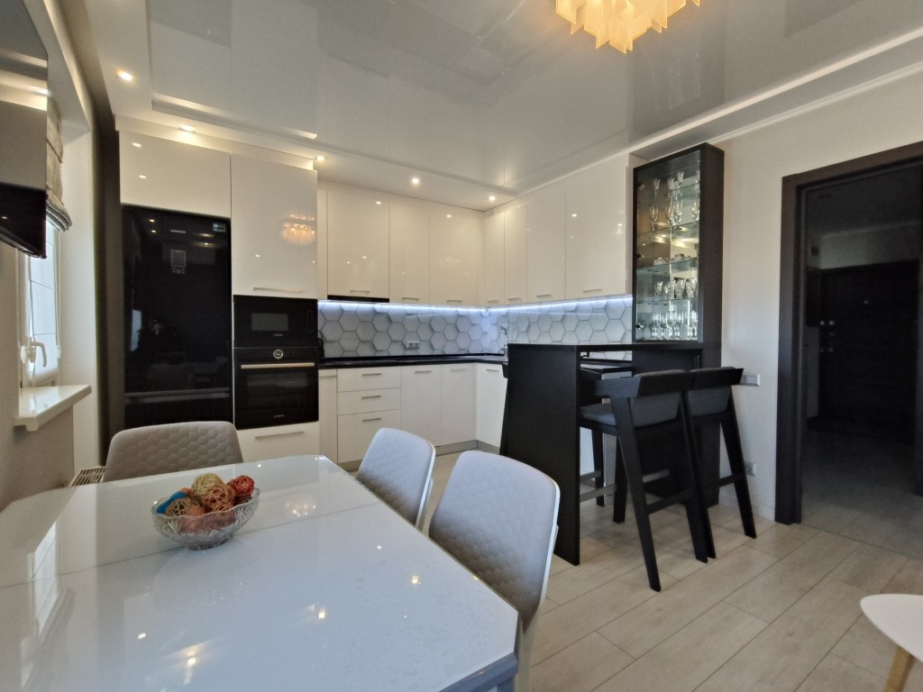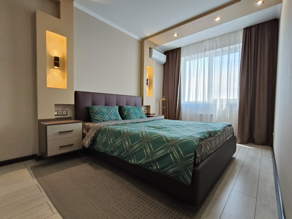 Квартира оснащена всім необхідним, аби ви почувалися як вдома. Дизайнерський ремонт із функцією "розумний дім" створює неповторну атмосферу, в якій кожна деталь продумана до дрібниць. Простора кухня-вітальня маніть вас на вечерю, а величезна зала та затишна спальня дарують спокій і комфорт.