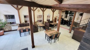 Комплекс опалюється двома котлами: газовий та твердопаливний, світло 380 Вт, теплі підлоги, є скважина, криниця, центральна вода та каналізація. Також є парковка для автомобілей. Двір виложений гранітною бруківкою, огорожа з каменю. Сама будівля з цегли та газоблоків, перекриття ж/б. Є система відеоспостереження. При необхідності залишається обладнання, меблі та техніка. Всі подробиці за телефоном в рекламі.