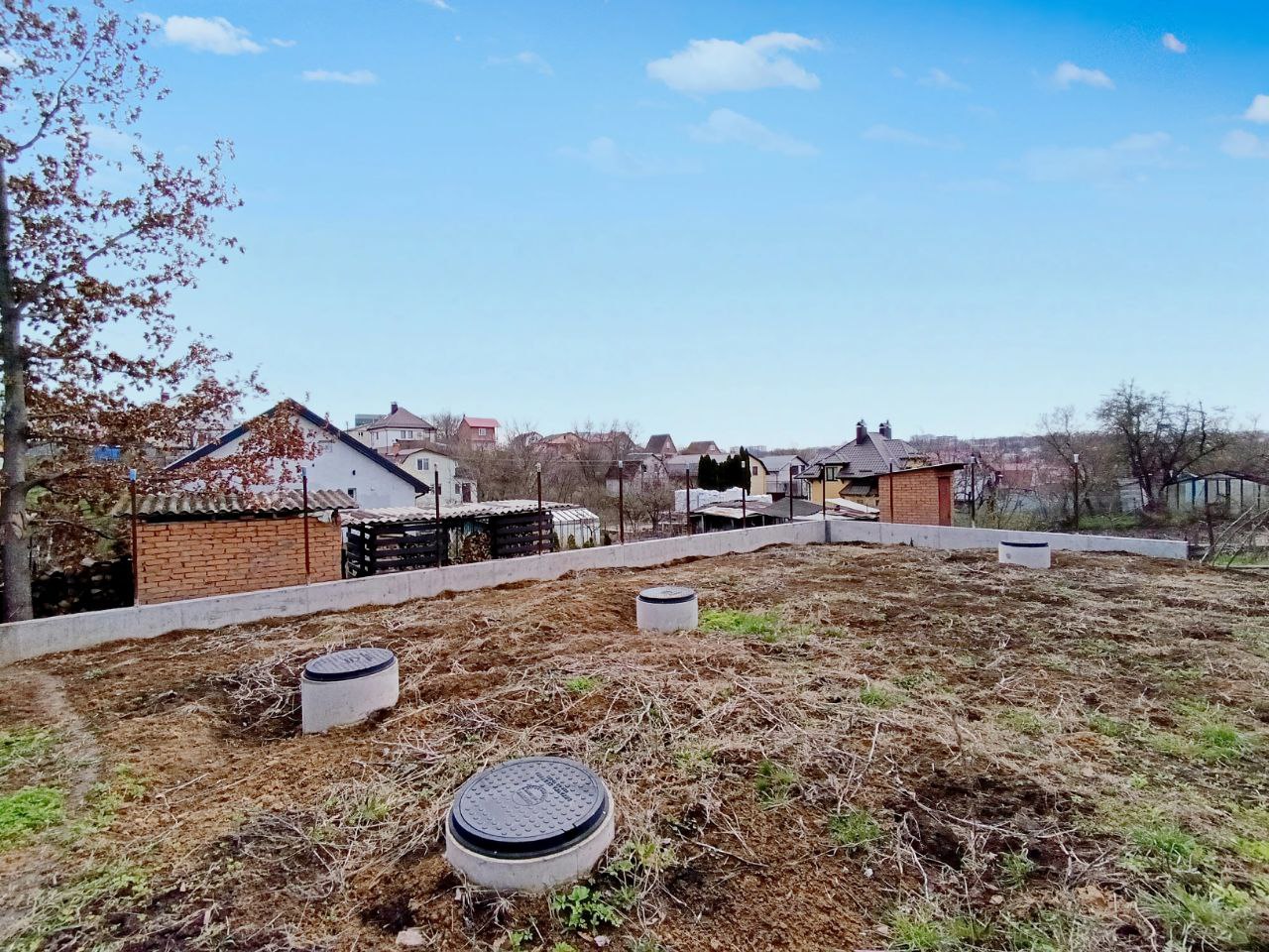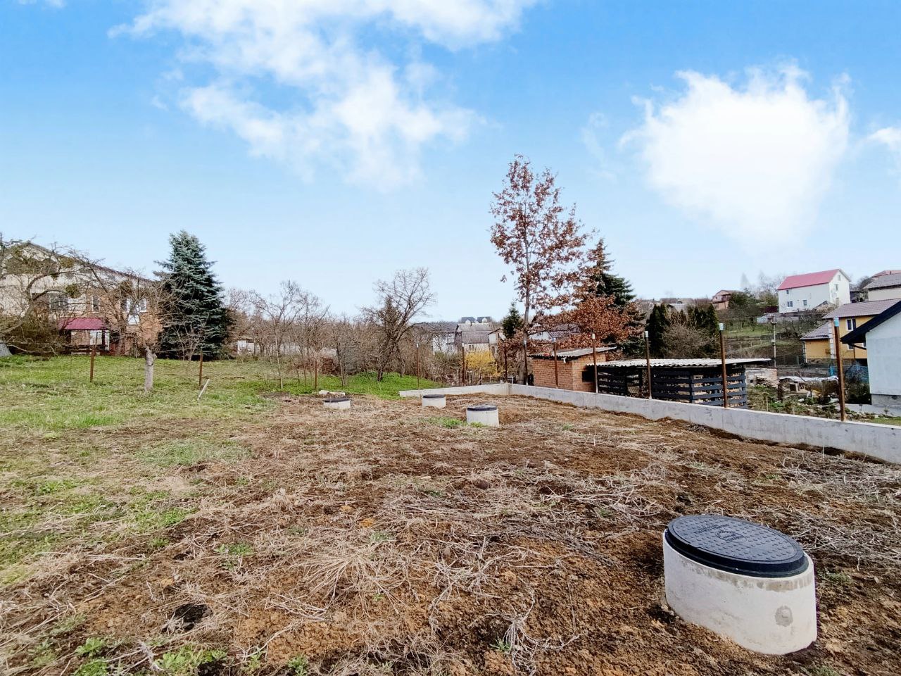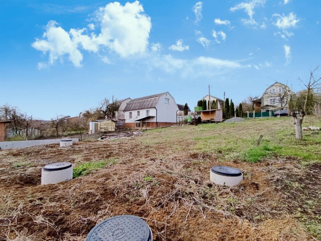 Дорога до ділянки майже вся асфальтована. Ділянка правильної форми, є невеличкий схил. Ділянка вже з комунікаціями: світло 380V, 15 кВт, проплачене і встановлено двохзонний лічильник День-Ніч; вода міська підключена і заведена на ділянку, встановлений лічильник; зроблений 3-х камерний септик з подвійним переливом і септик для стічних вод окремо; газ по вулиці. Зроблена підпорна стіна зі всіма розрахунками на навантаження. Ділянка прибрана (чистенька).