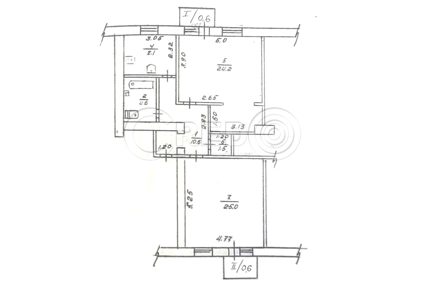 - санвузол суміжний 4,6 м.кв.