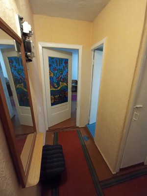 Квартира світла, вікна квартири виходять на південь північ дуже тепла з косметичним ремонтом, є все необхідне шафа, 2 спальні розкладні дивани в гарному стані, меблева стінка, також вбудовані кухонні меблі стіл, стільці) та техніка (холодильник, пральна машина, газова плита з духовкою)