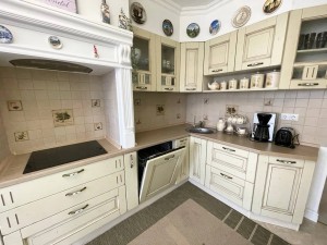 Ремонт виконаний в класичному стилі із дороговартісних матеріалів, який ідеально доповнюють вишукані меблі та декор. Всі вбудовані меблі та техніка залишаються. Зокрема, присутня посудомийна машина, варильна поверхня, духовка, фільтри для води, кондиціонер тощо. На опалення – 2-контурний газовий котел, а також тепла підлога в холі, яка надзвичайно довго зберігає тепло. Розміщена на 9 (не останній) поверсі із неймовірним краєвидом!