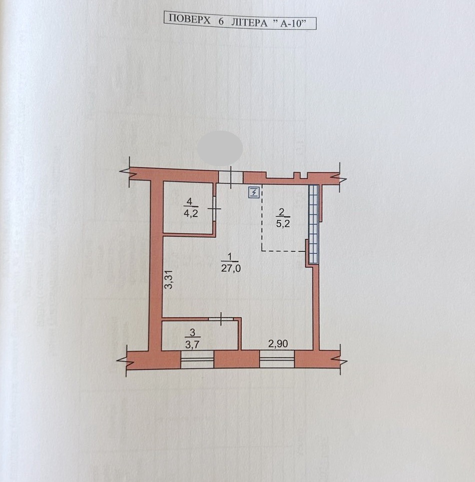 1 кімн., площа 40.2/27/10, поверх 6/10