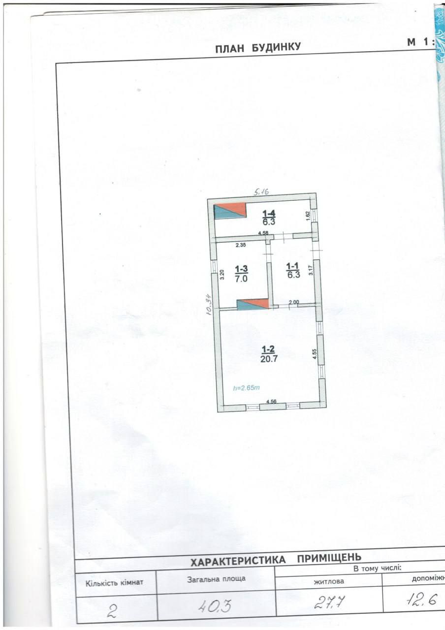 Площа будинку: 40,3/27,7/6,3 кв.м.