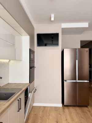 • Оснащення: Квартира повністю укомплектована всіма необхідними меблями та технікою. Встановлено теплу підлогу.