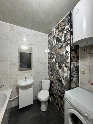 Санвузол сумісний, встановлені пральна машина та бойлер.