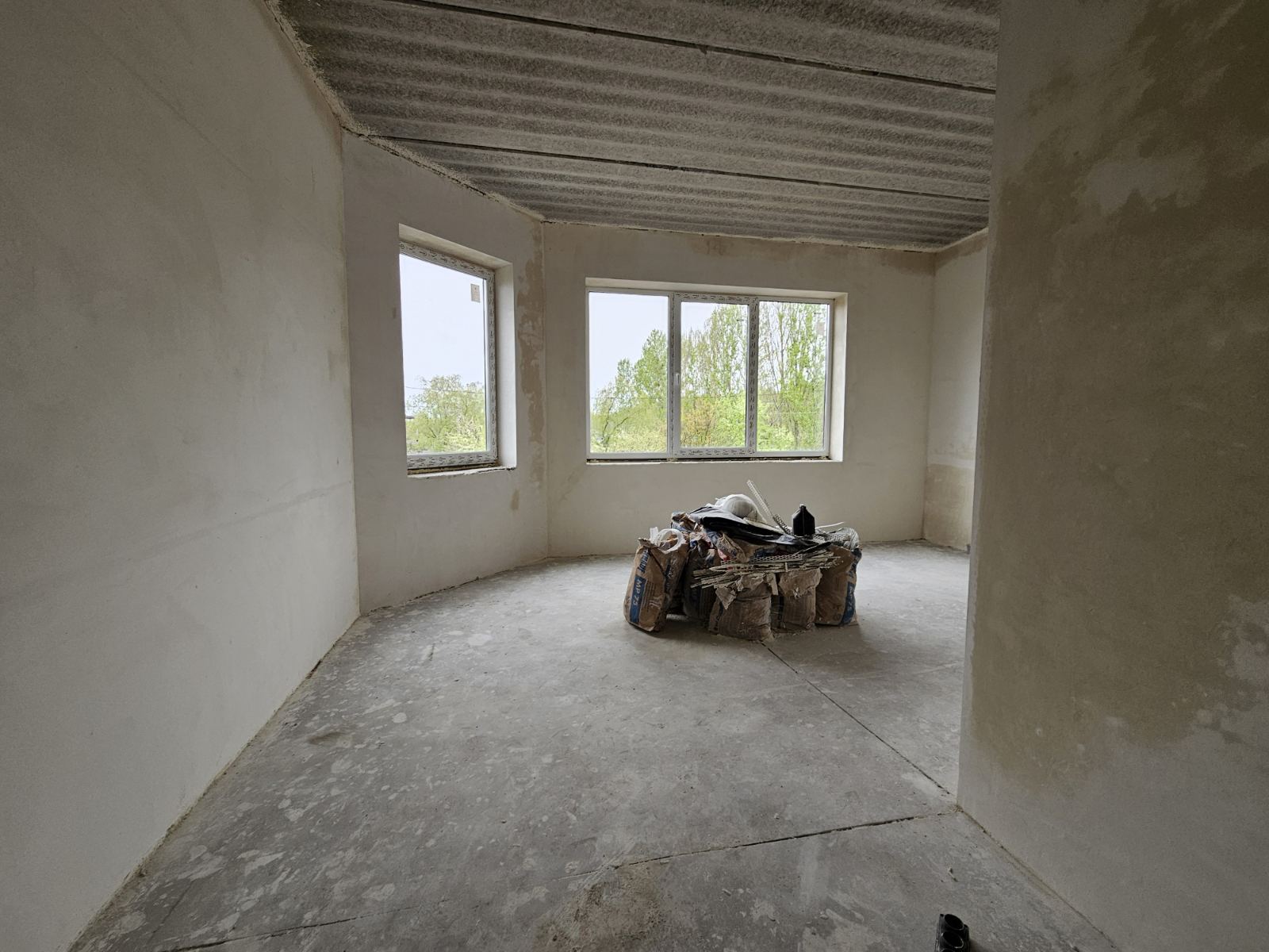 Будинок побудований з піноблоку, встановлені якісні 3-камерні металопластикові вікна з наповнювачем. Стан після будівельників, проте в квартирі вже додатково виконане утеплення підлоги пінополістиролом та якісно оштукатурені стіни.