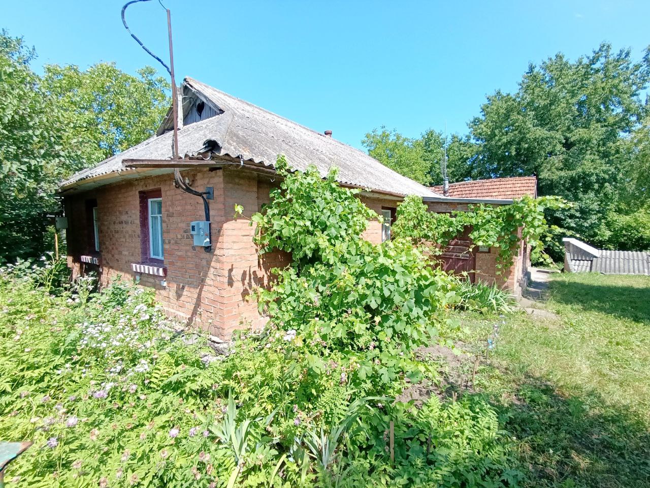 Будинок знаходиться поруч з відпочинковим комплексом "Зелена садиба" та водосховищем. Одноповерховий, складається з 3х кімнат, кухні, коридору та прихожої. доглянутий, використовується наразі як дача. Глинобитний, обкладений цеглою. Перекриття - шифер. Стіни та стеля пофарбовані, підлога дощата. Перекриття дерев'яне. Опалення - водяне, розведено по будинку (від газового котла). Світло заведено в будинок (220В). Вода - криниця. Поруч з будинком є централізована, але в будинок її не заводили. Санвузла в будинку немає. Лічильники на світло і газ.