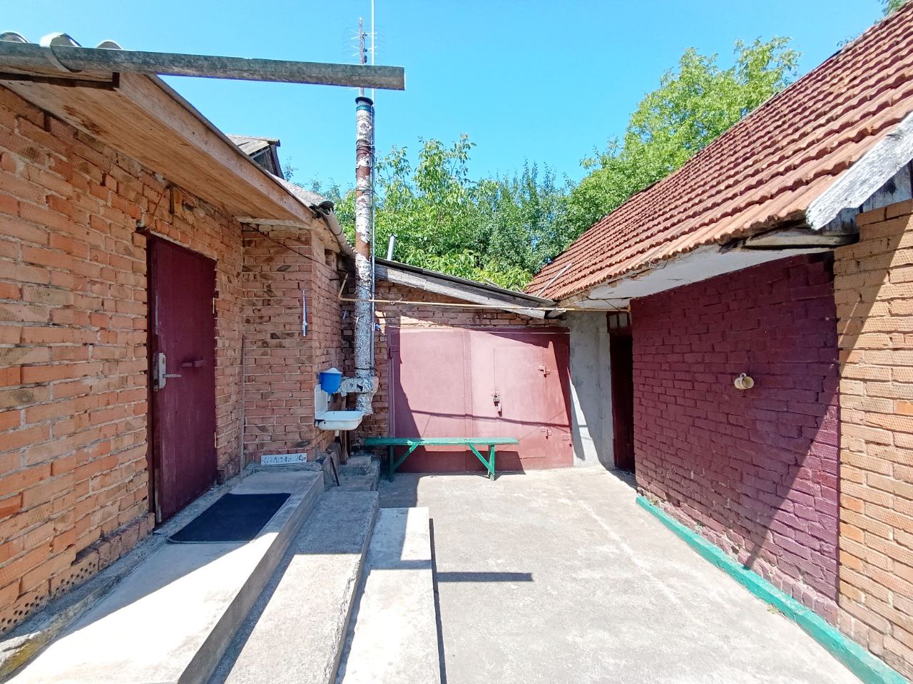 На території є ще цегляний гараж та сарай - перекриті черепицею, та цегляний погріб. Земля - 38 соток (30х127м), огороджена, сад, город, є ворота. Оформлена 2-ма актами: