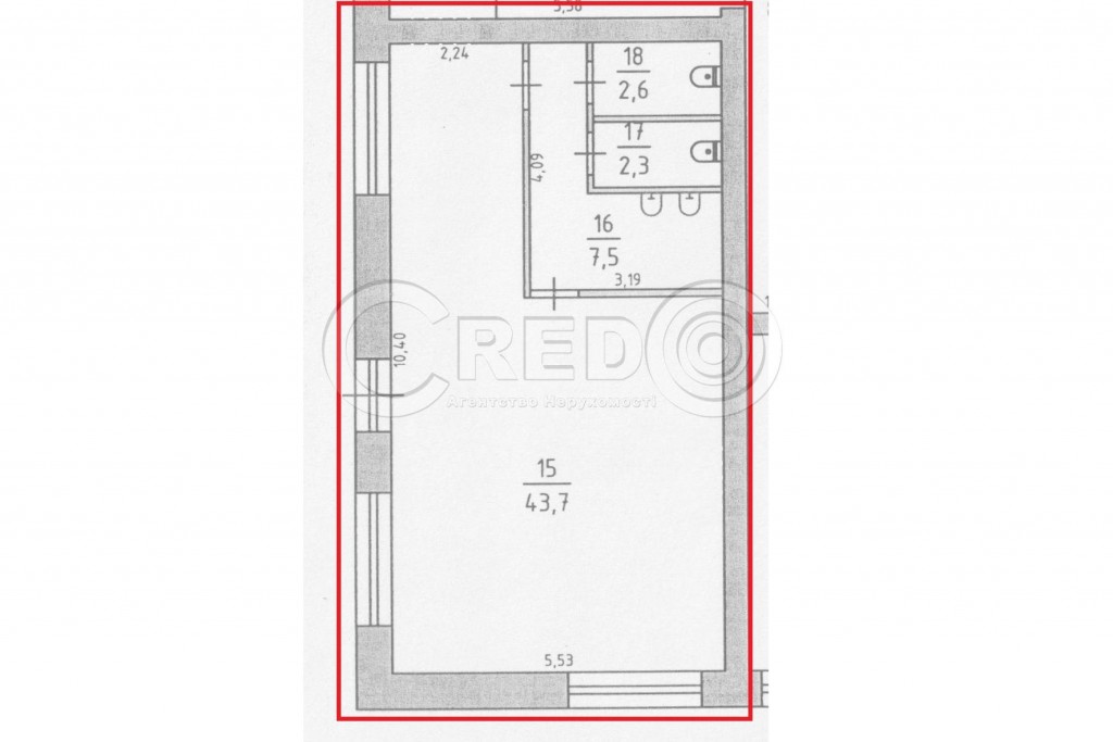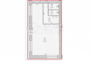 - Основний зал - 43,7 кв.м