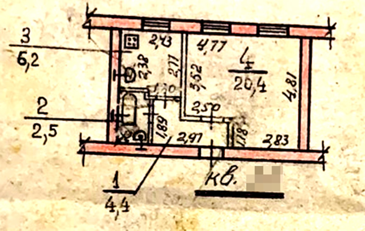 1 кімн., площа 30/17/6, поверх 1/5