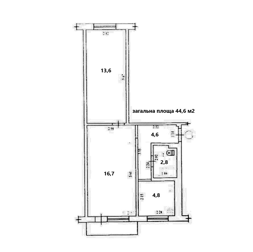 • Загальна площа — 44,6 кв.м