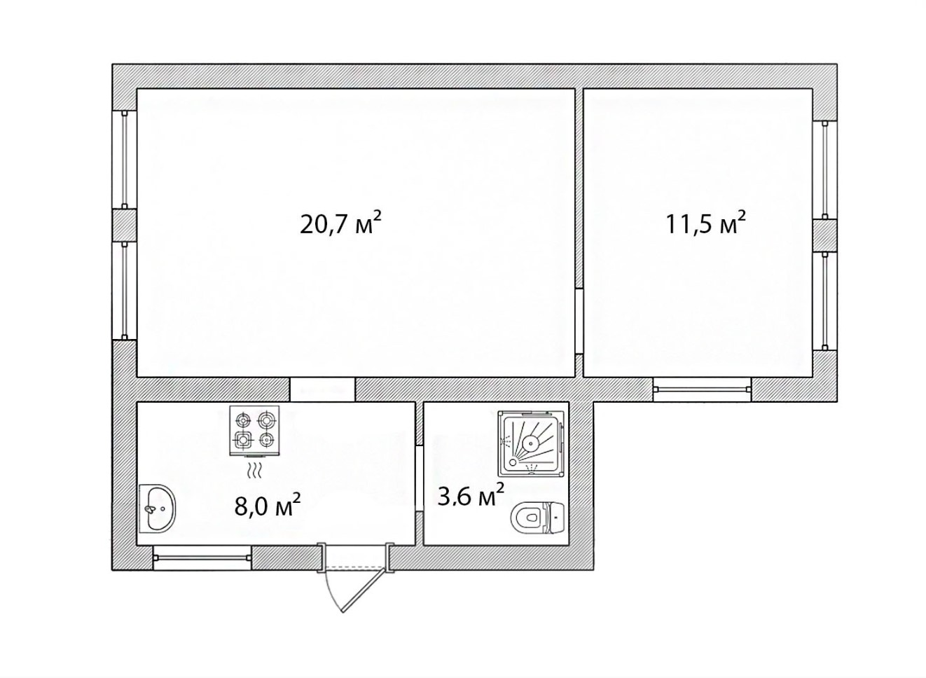Загальна площа: 44 кв.м
