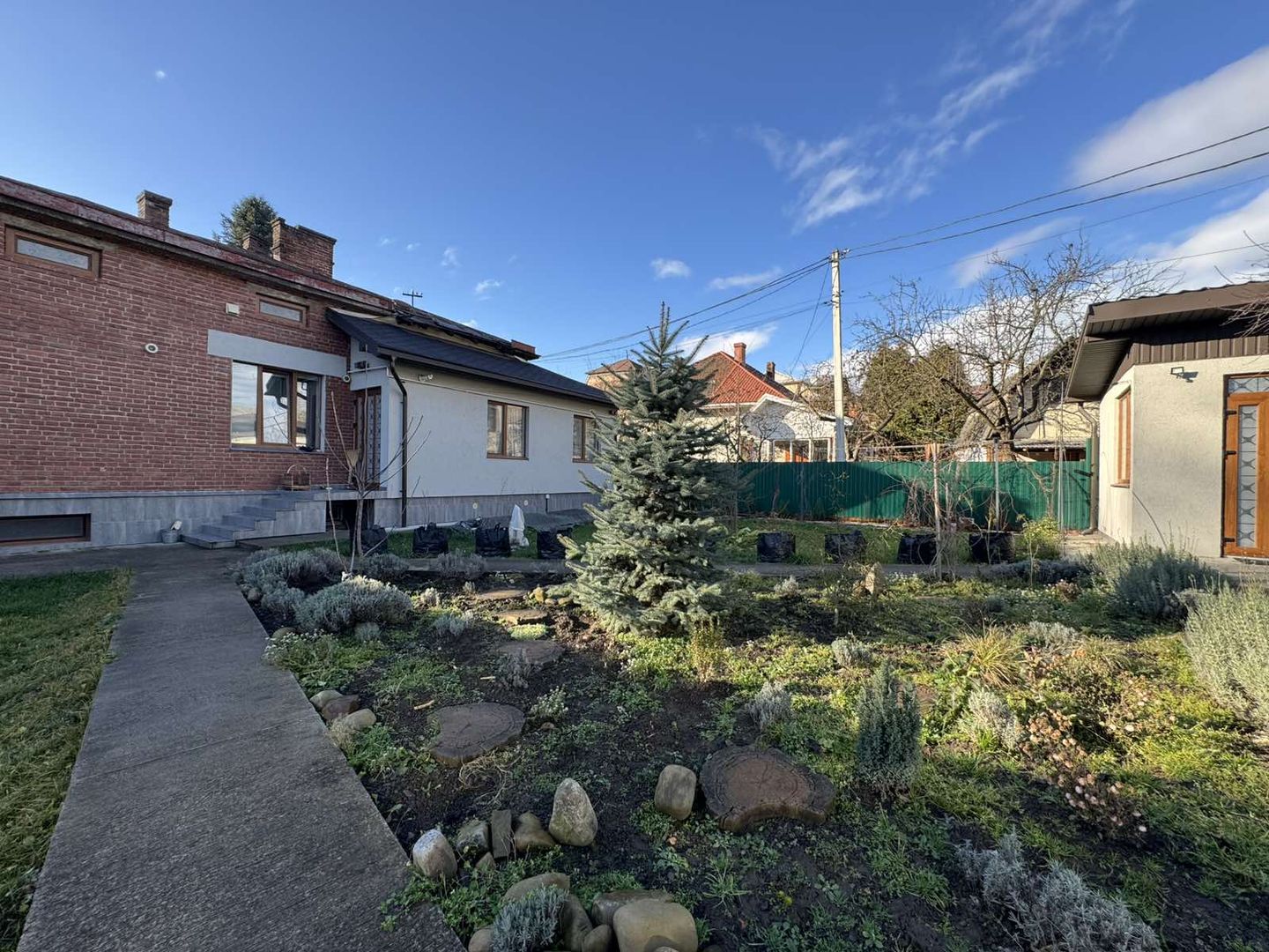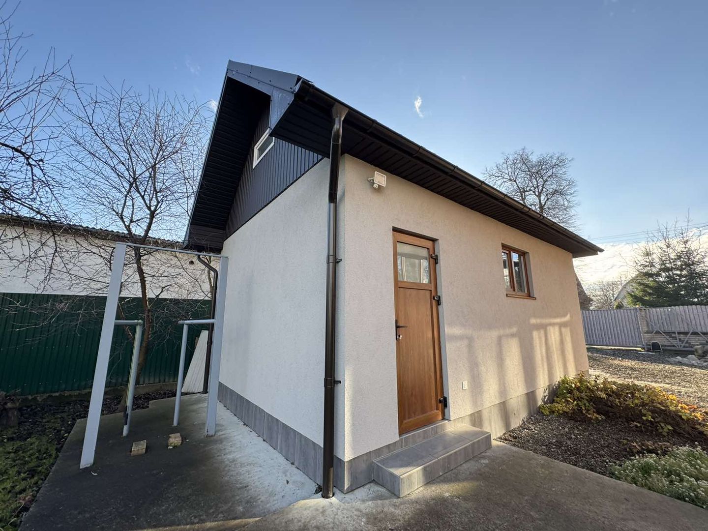 До будинку є центральний вхід та задній вихід який веде на затишне подвір'я. Три кімнати, кухня, ванна кімната, гостьовий санвузол та великий підвал на декілька приміщень, який можна використати не тільки для зберігання всього необхідного а також використовувати для укриття.