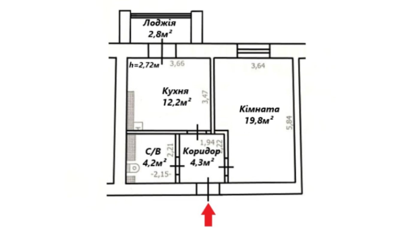 Поверх- 6/9, Площа- 43,3/19,8/12,2