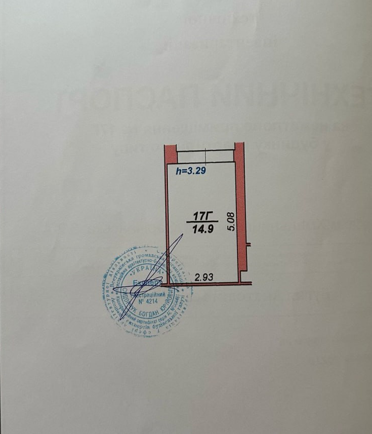 Площа: 14,9 кв.м. (2.93х5.08м, висота 3.29м)