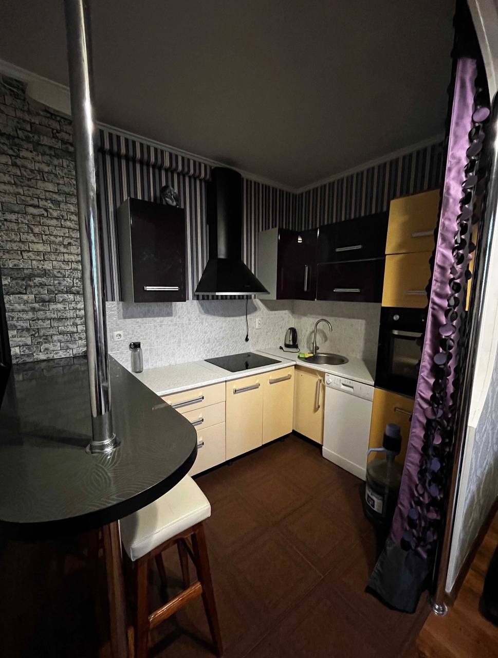 Повністю укомплектована меблями та побутовою технікою: холодильник, пральна машина, духова шафа, варильна поверхня, посудомийна машина, кухонні меблі, шафа.