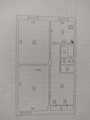 2-кімнатна квартира 2й поверх 5ти поверхового цегляного будинку по вул.Січеславська25, Покровський район, м. Кривий Ріг, Дніпропетровська область. Загальна площа-71,0 кв.м, житлова-41. 3кв.м, (20.2\21.1), Н-3.45м, кухня-7.6кв.м, коридор-15.9кв.м, ванна-2.9кв.м, туалет-1.1кв.м, комори-0.8\0.7\0.7кв.м, є балкон зас. Квартира двостороння, не кутова, кімнати роздільні, вікна-мп, труби-мп, підлога дерев'яна, перекриття-бетонне, лічильники: на газ, воду, світло (день-ніч) у житловому стані. Одне вікно виходить на червону лінію, вікно кухні та балкон виходять у двір.