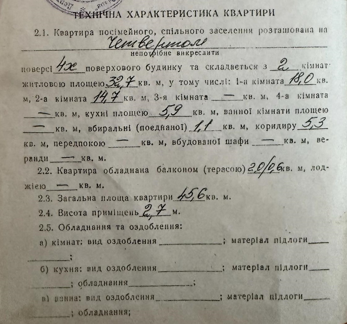 В квартирі великі світла кімнати,зручна кухня квадратної форми та суміжний санвузол,є газова колонка та газова плита проведено інтернет .