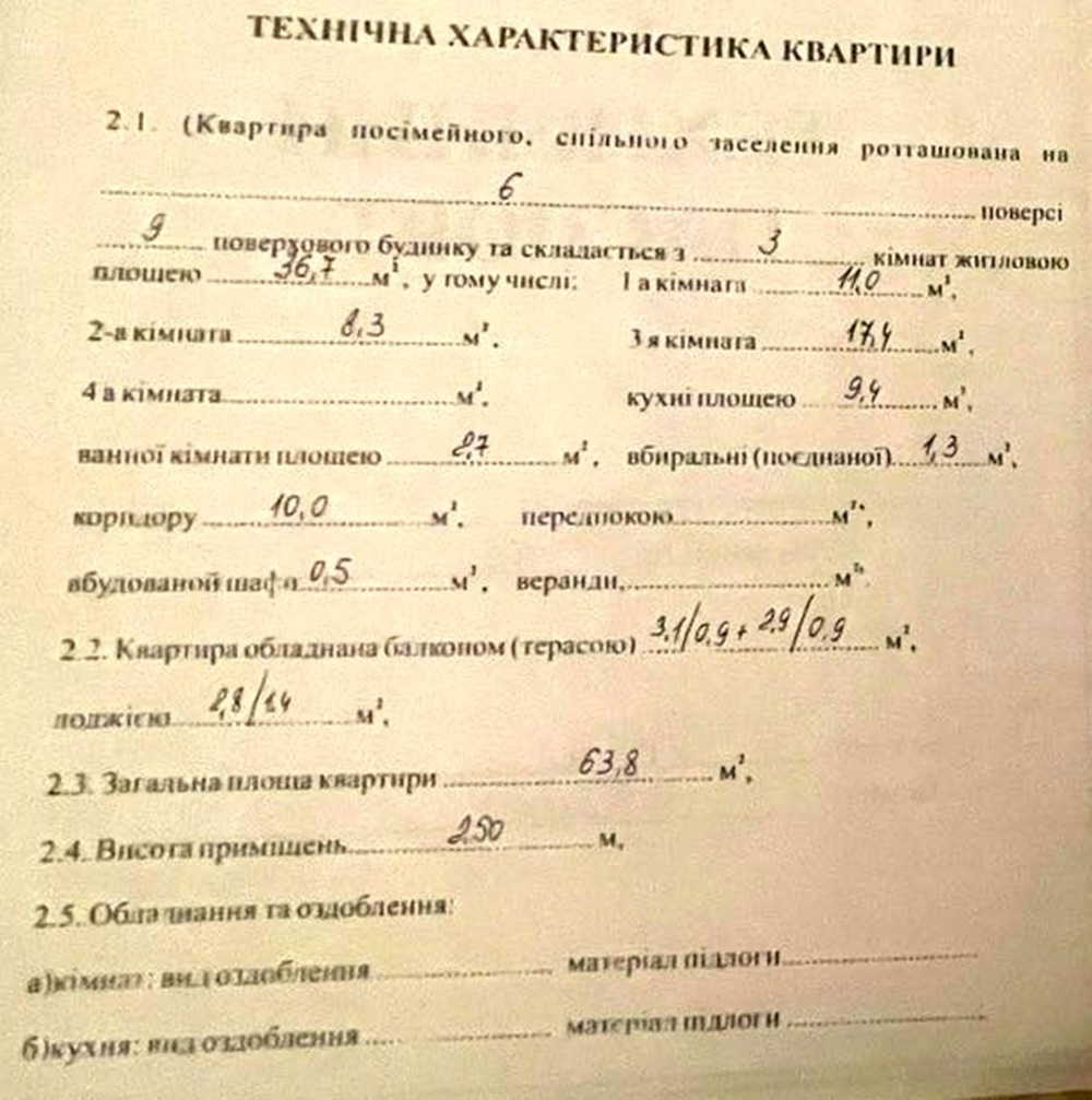 2 кімн., площа 65/39/8, поверх 5/5