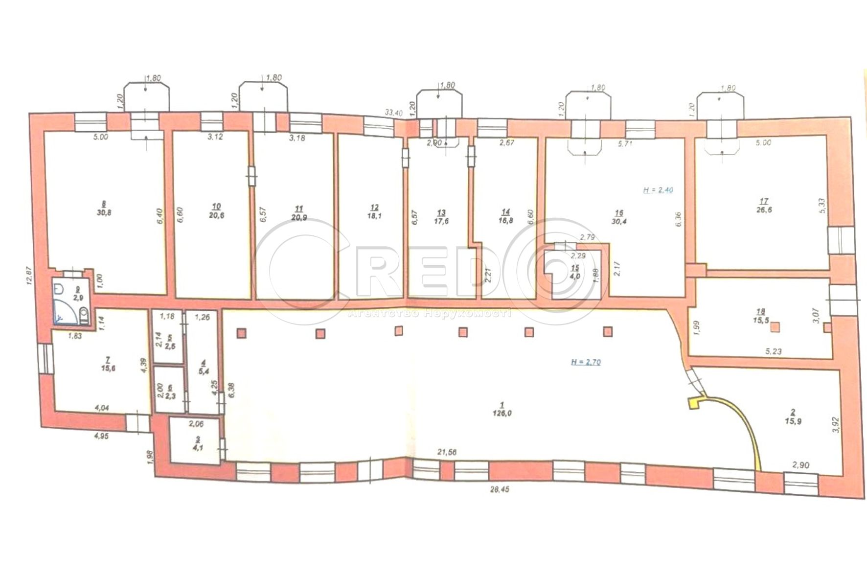 - Висота стелі – 2.80м.
