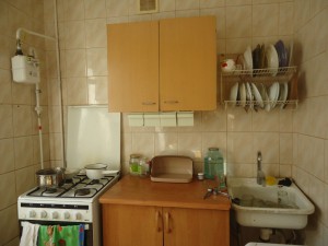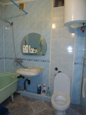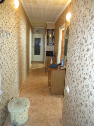 Квартира отличается нестандартной планировкой,с\у расположен возле кухни,рядом с входной дверью,в начале коридора, а вместительная кладовая в конце коридора.