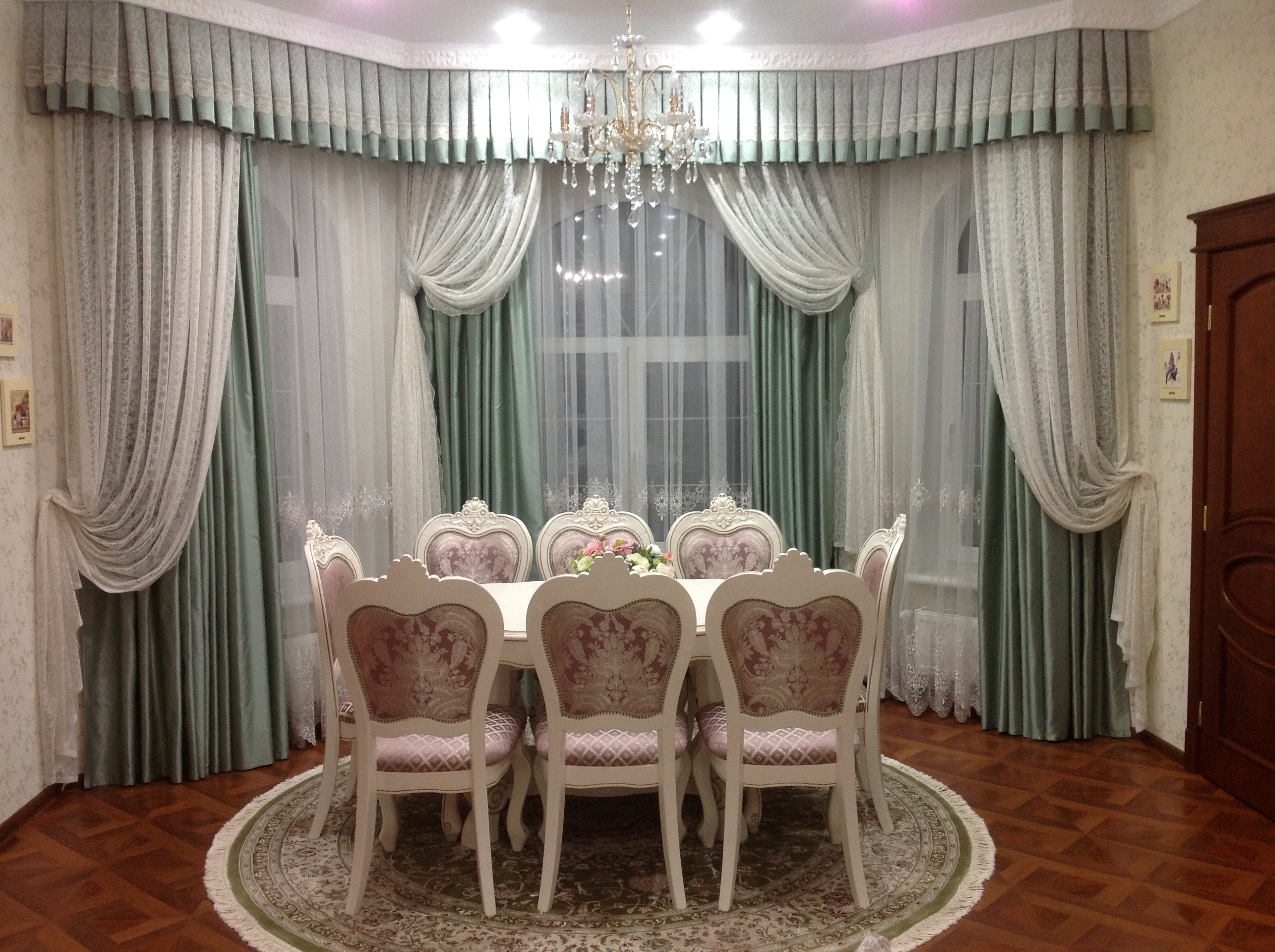 - внутреннее пространство первого этажа дома (кухня-столовая, каминная комната, лестничный холл) без внутренних дверей, разделено большими арочными проемами из натурального дерева;