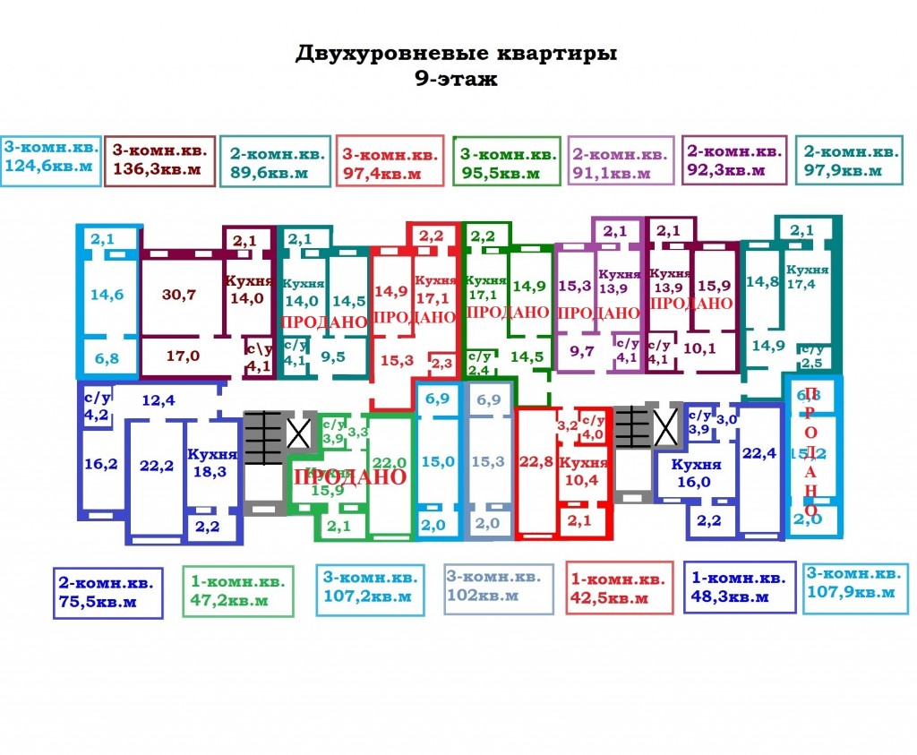 Двухуровневая 2-комн. квартира, общей площадью - 95,5 м.