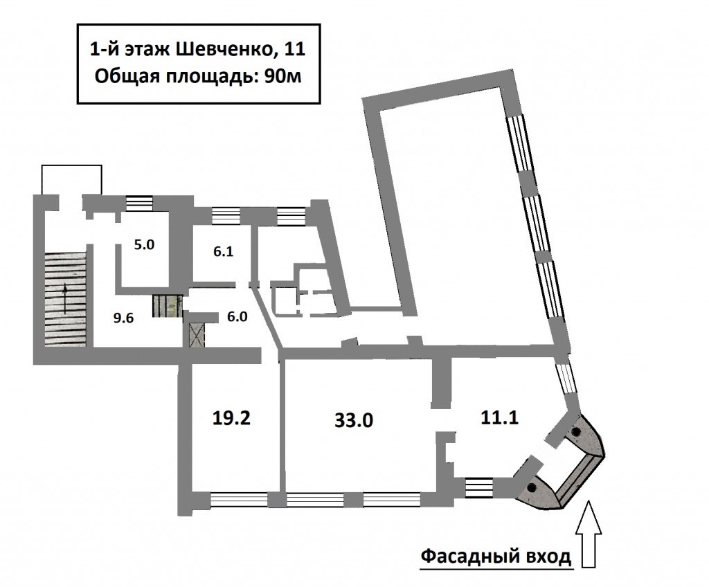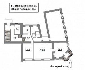 Аренда фасадного помещения 90м (+ 100м подвальное по 100грн./м2)в Исторической части города, перекресток ул. Шевченко и ул. Сережникова.