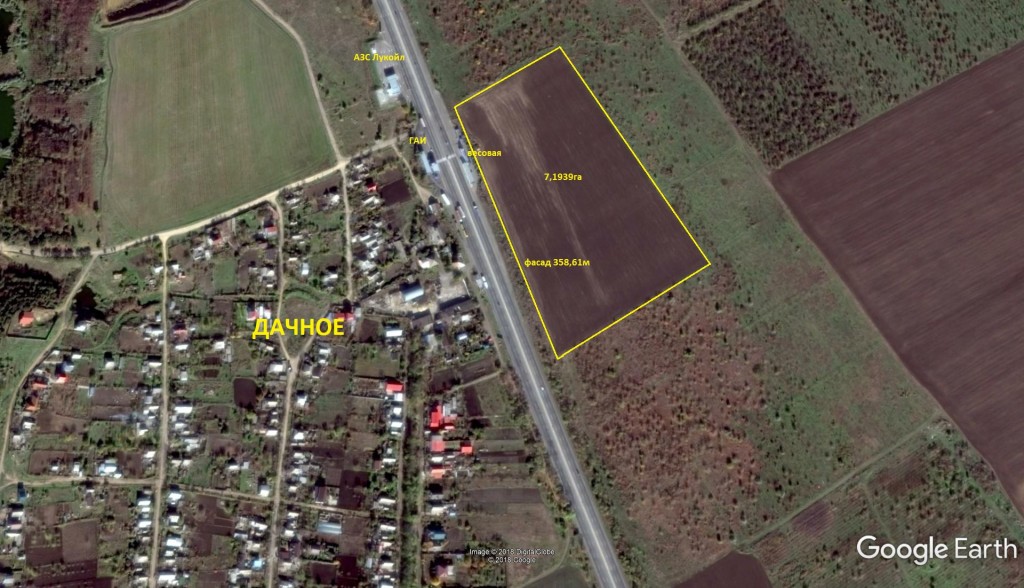 Фасадный участок 7,2Га Киевская трасса, с. Дачное