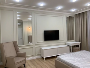 Формат квартиры: 2 спальни, кухня-студия 30м2, 2 санузла, большая гардеробная комната.