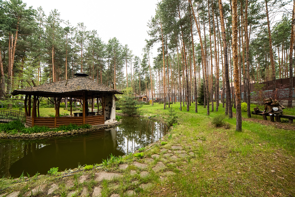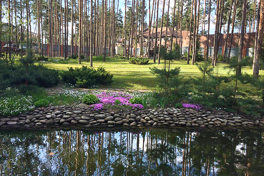 Тут є все для гарного життя на природі: свіже хвойне повітря, пахощі квітів, дзюрчання струмка, доглянута зона барбекю з вогнищем на невеликому острові, оточеному штучним озером та багато іншого.