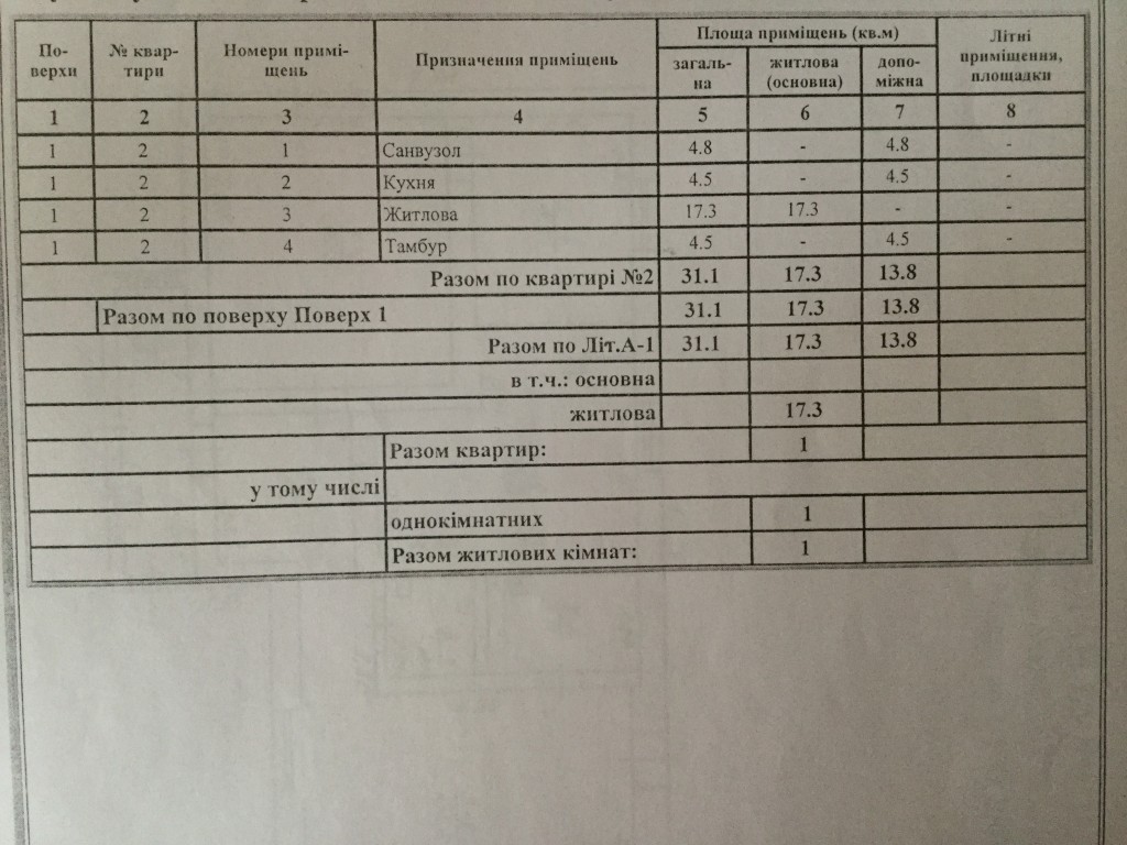 Загальна площа: 31 кв.м