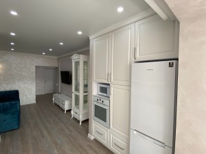 В квартирі зроблений капітальний евроремонт, при якому використовувались європейські, якісні матеріали. Автономне опалення, тепла підлога, підвісна та натяжна стелі, венеціанська та декоративна шпаклівка з додаванням елементів декору.