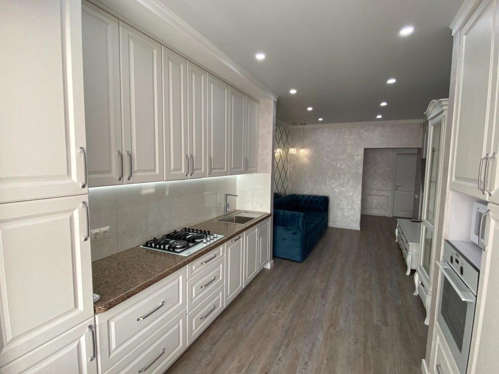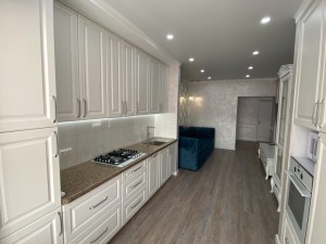 Квартира укомплектована в повному обсязі, всіма необхідними, новими та якісними меблями та дорогою технікою. Повний комплект кухонної техніки: посудомийка, варочна поверхня, духовка, мікрохвильова піч, холодильник. Санвузол має якісну сантехніку, ванну, вмонтовану інсталяцію.