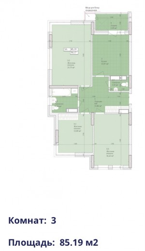 - 3 кімнатні: 85.19 м2 ( 1 секція, 22 пов. тип 3 А),