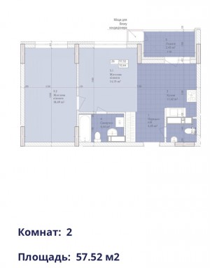 57.52 м2 ( 2 секція , 14 пов. тип 2 В),