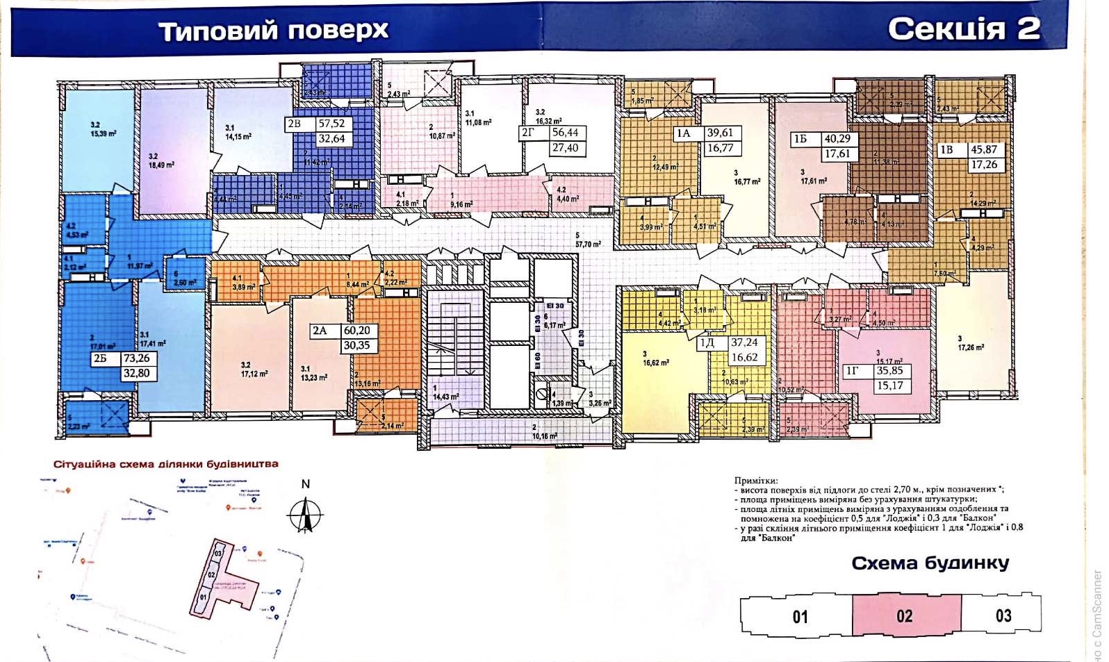 73.26 м2 ( 2 секція, 8 і 11 пов. тип 2Б)
