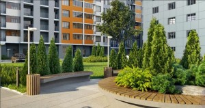 - Закрита територія біля будинку, де є ігрові та спортивні майданчики, зручні лавочки та охорона з відеоспостереженням.