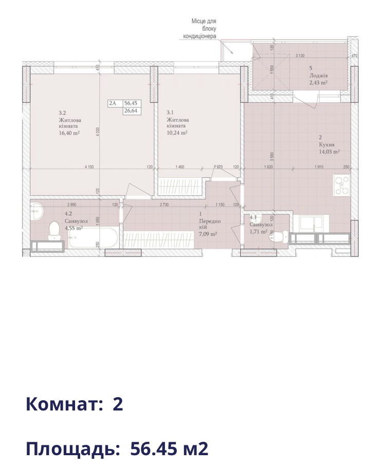 56.45 м2 (1 секція, 10 пов. тип 2 А),