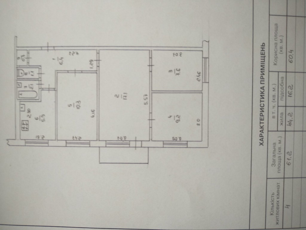 Жила площа: 44 кв.м