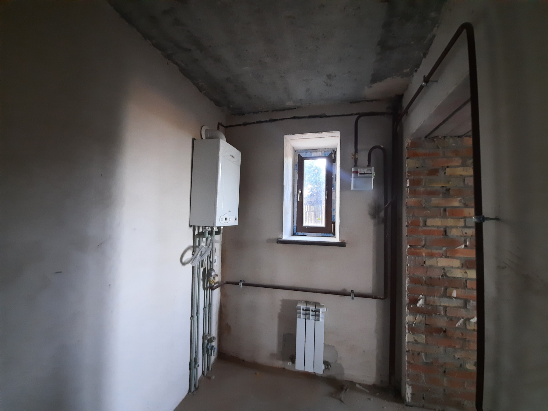 - установление двухконтурный котел и биметаллические радиаторы, счетчики газа, воды и учета электроэнергии, м/п окна (двухкамерные стеклопакеты), чистовая отделка стен и стяжки пола, металлические входные двери