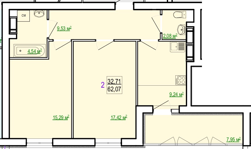 Загальна площа: 62.07 кв.м