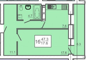 Загальна площа - 47,3 м²;