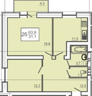 Загальна площа: 63.9 кв.м