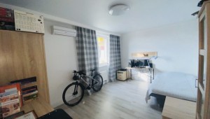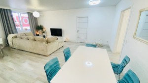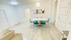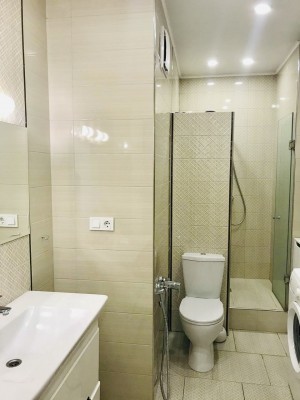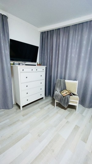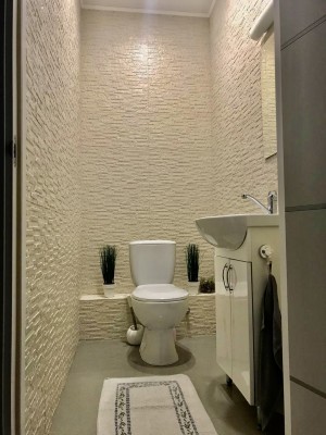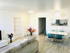 Квартира очень тёплая. Отделана в светлых тонах декоративной штукатуркой в скандинавском стиле. Полностью меблирована корпусной мебелью. Кроме кухни. Её можно оборудовать на свой вкус. Здесь есть вся техника: холодильник, духовой шкаф, варочная поверхность, посудомоечная машина. И не только на кухне. К вашим услугам 2 стиральные и сушильная машины, 2 бойлера, 5 кондиционеров, телевизоры. Установлены счётчики тепла и воды – сплошная забота о каждой бытовой мелочи.